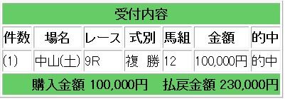 宝塚記念は3点以内の10万円コロガシ成功!50万4000円獲得となりました。