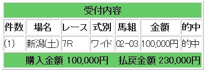上記情報馬が2,3着となり、ワイド1点的中で23万円の払い戻しとなりました。