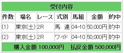「穴のNHKマイルカップ情報」+「強力情報馬出走レース2鞍5万円コロガシ勝負」3鞍的中で114万4520円獲得。