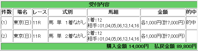オークスは『今年一番の自信のレース』として3万円→20万2810円