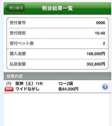 会員様情報では◎12インディチャンプからのワイド2点指示で4.2倍的中となり、35万2800円の払い戻しとなりました。